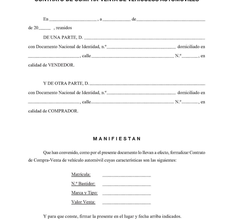¿Cómo tiene que ser un contrato de compraventa de un vehículo entre particulares?